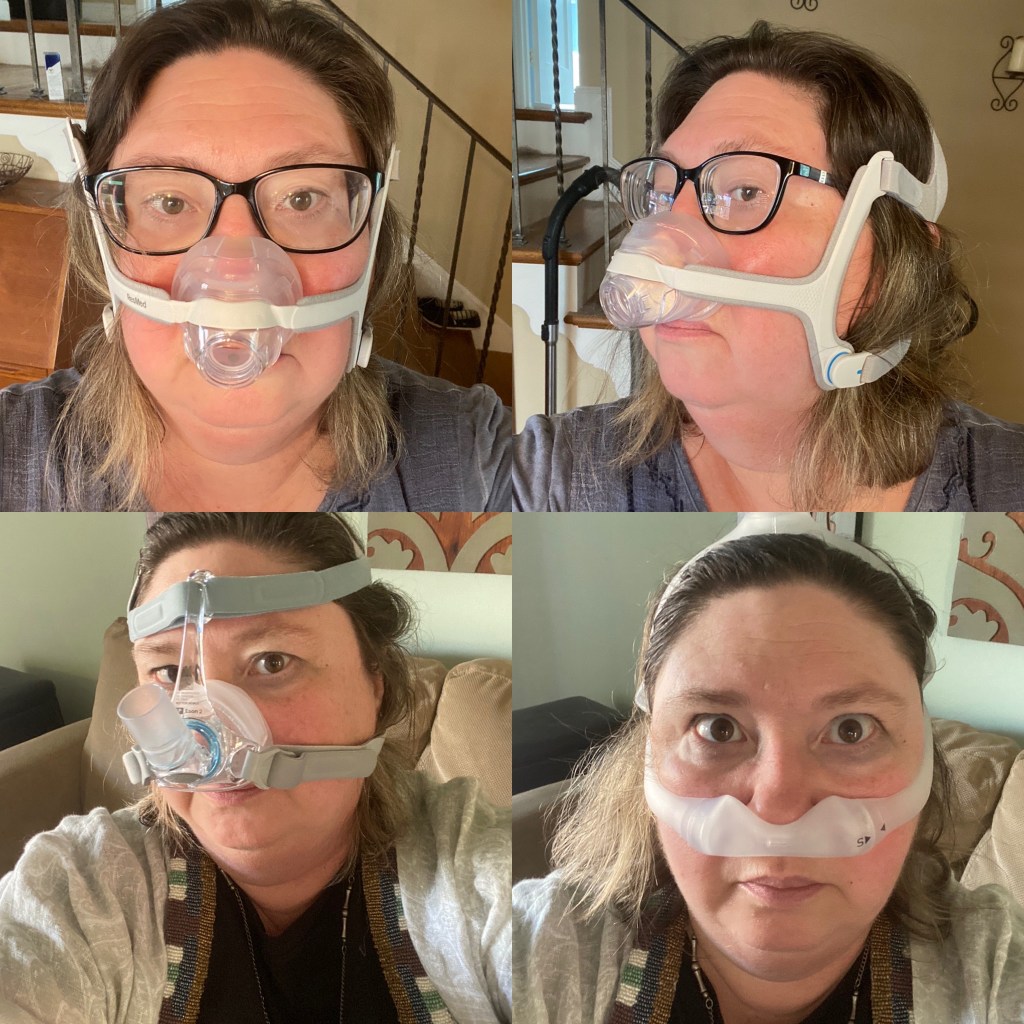 After my Sleep Apnea Diagnosis came the hard part. The fitting of the mask. A few weeks after the diagnosis, I had an online appointment with the sleep center. They asked me a bunch of questions and then told me due to supply chain issues, I would have to wait 6-8 weeks for the machine to arrive. Who knew Sleep Apnea machines were in high demand!? I wasn’t surprised because isn’t everything back ordered due to the Pandemic? I also got zero sleep knowing that my breathing was compromised, so it played a big middle finger to my psyche.